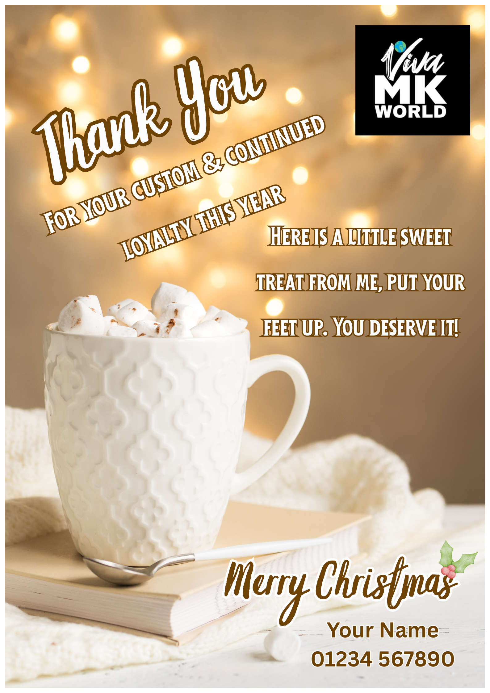 Show your appreciation this festive season with our beautifully designed A6 Thank You Cards for your own sweet treat to be added.