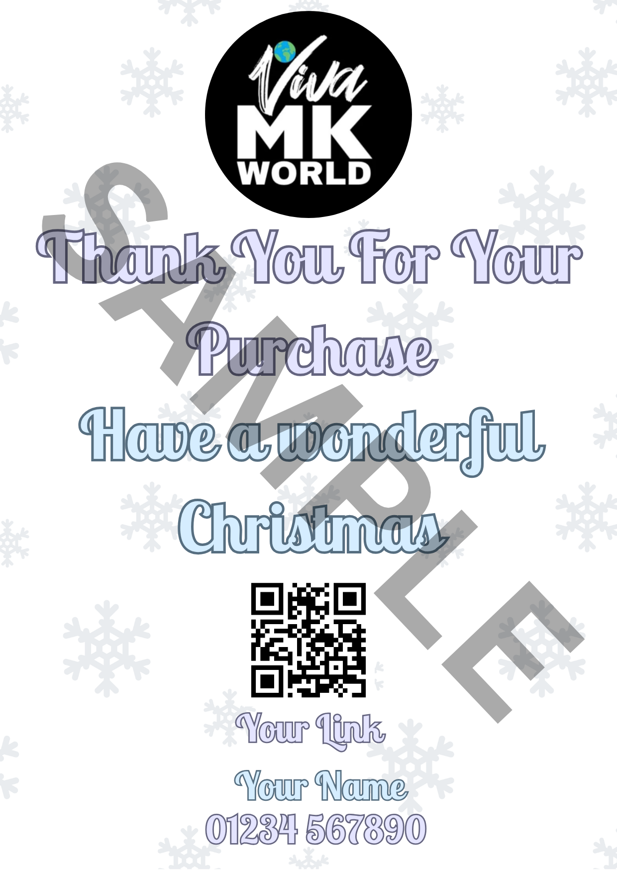 Personalised with your Name, Number and a QR Code to your shop