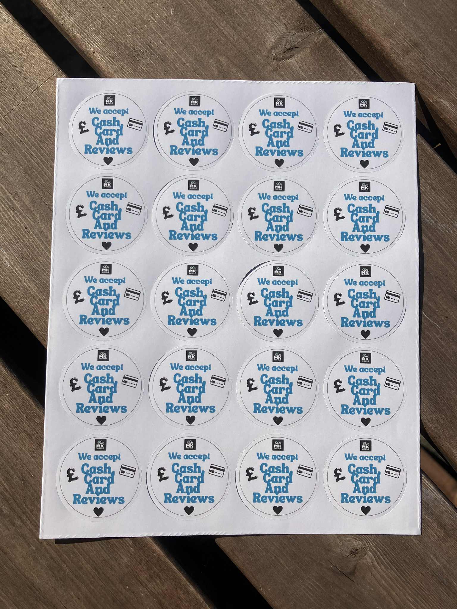 A white gloss coated Polyester film with a good water resistant adhesive.